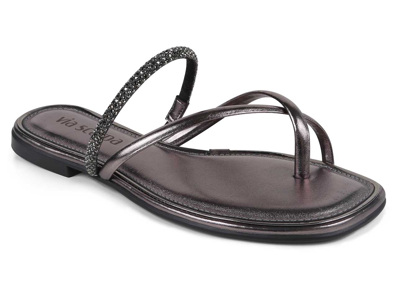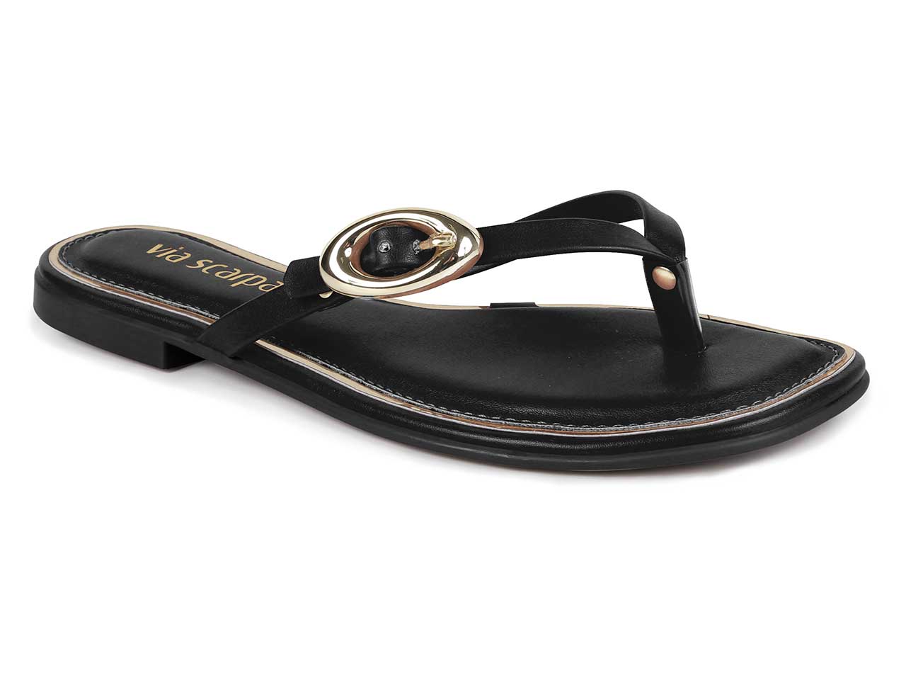 Sandália Rasteira Preta com Detalhe Dourado