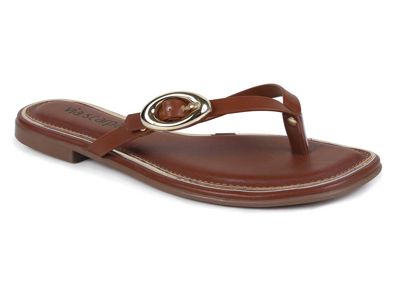 Sandália Marrom com Detalhe Oval Dourado