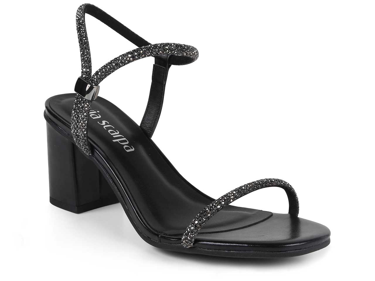 Sandália de Salto Preta com Strass