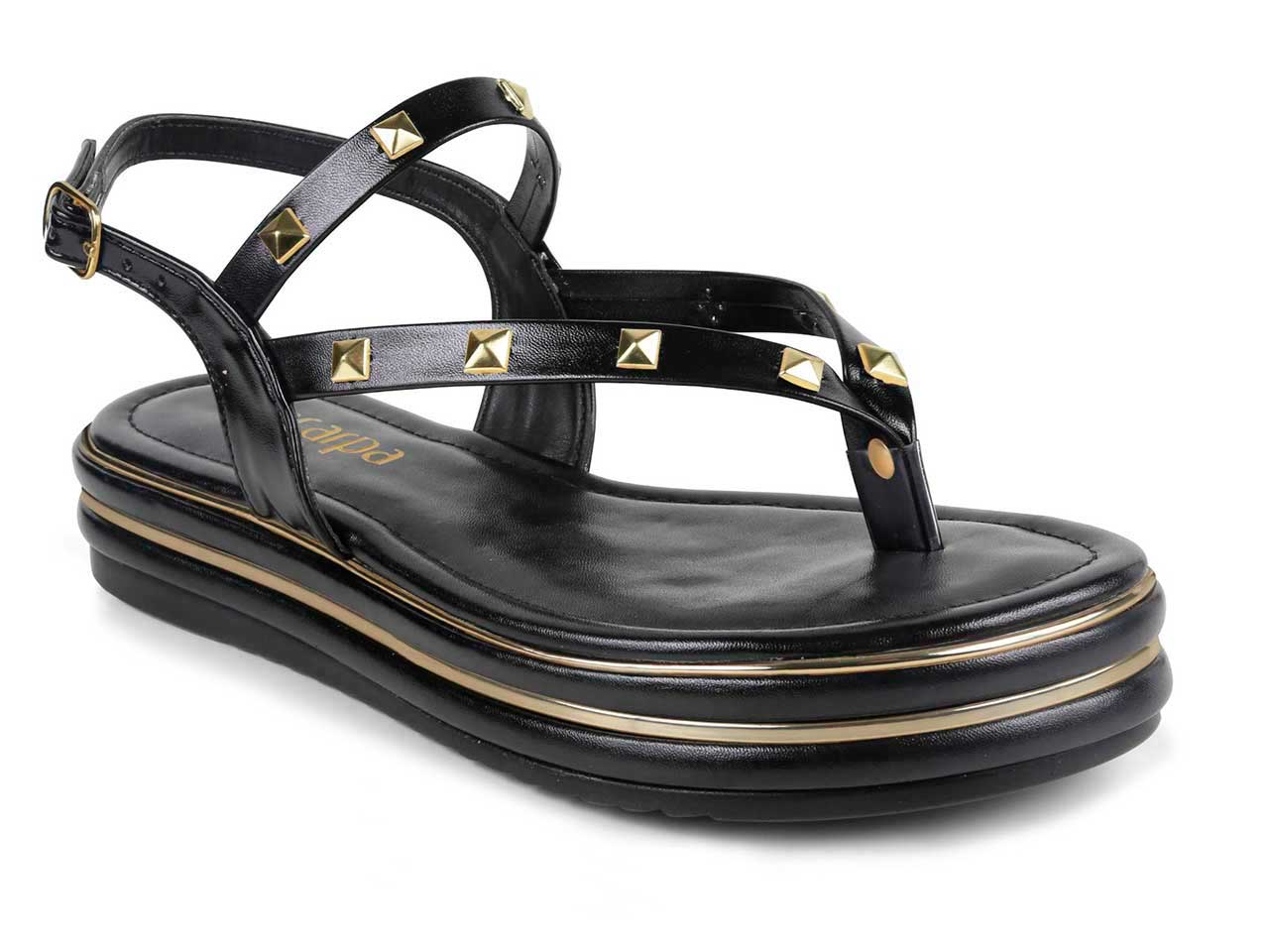 Sandália Preta com Tachas e Sola Confortável